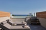 Open plan bedroom, double bed or twin beds, bathroom with shower, private furnished terrace with sea view, outdoor cozy private pool.